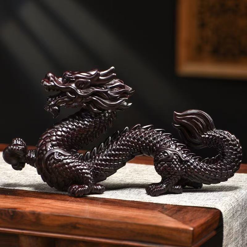 Ebony carved dragon ornament with base solid wood five-clawed dragon craft gift housewarming opening birthday gift